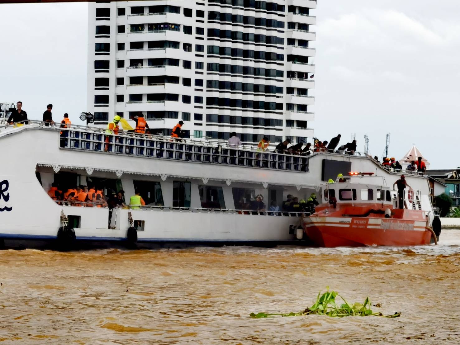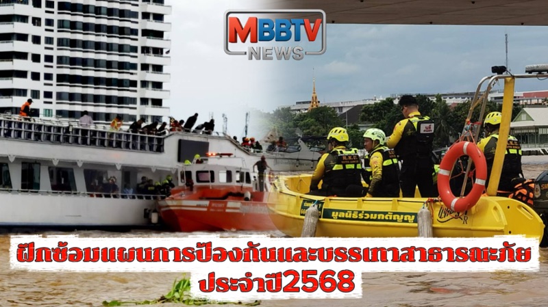 #ฝึกซ้อมอุบัติภัยทางน้ำร่วม กรณีเหตุเรือโดยสารและภัตตาคารโดนชน กับเรือลำเลียงบรรทุกสินค้าในแม่น้ำเจ้าพระยา