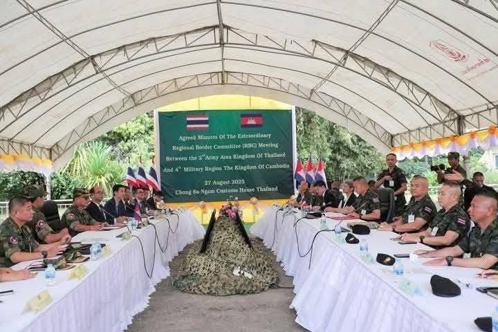 วันนี้ ซึ่งที่ประชุมเริ่มแล้ว ระหว่าง แม่ทัพภาคที่2 ไทย และ แม่ทัพภาคที่4 กัมพูชา ในพื้นที่ช่องสะงำ อ.ภูสิงห์ ซึ่งเป็นการประชุมแบบกลางแจ้ง