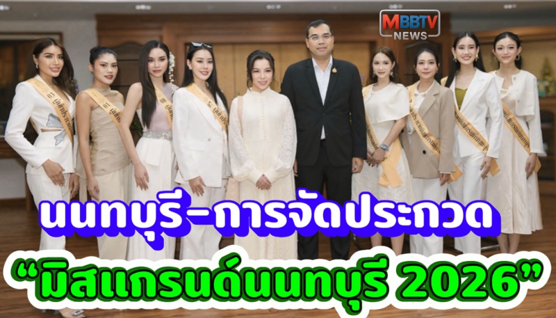 วันนี้ (19 ธันวาคม 2568) เวลา 09.00 น. นางสาวธนัชชา ตั้งพิทักษ์วงศ์ (หมอพลอย) ผู้อำนวยการกองประกวด มิสแกรนด์นนทบุรี 2026 ผู้บริหาร Seoyeong Clinic และผู้เข้าประกวดมิสแกรนด์นนทบุรี เข้าพบ นายเชษฐา โมสิกรัตน์ ผู้ว่าราชการจังหวัดนนทบุรี เพื่อขอความอนุเคราะห์และการสนับสนุนจากจังหวัดนนทบุรี ไม่ว่าจะเป็นด้านพื้นที่จัดงาน การประสานงานหน่วยงานภาครัฐที่เกี่ยวข้อง การประชาสัมพันธ์ระดับจังหวัด หรือรูปแบบการสนับสนุนอื่น ๆ ตามที่เห็นสมควร