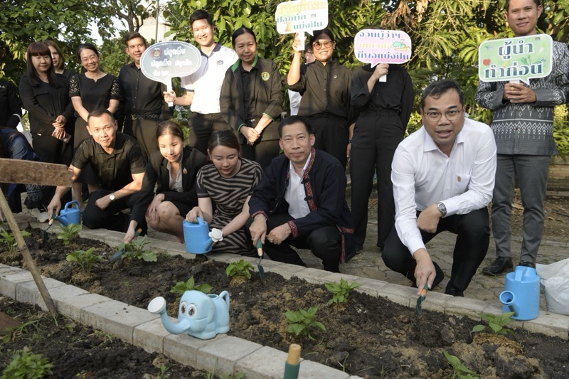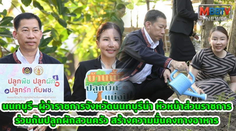 วันนี้ (19 ธ.ค.68) เวลา 16.30 น. ณ จวนผู้ว่าราชการจังหวัดนนทบุรี อำเภอเมืองนนทบุรี นายเชษฐา โมสิกรัตน์ ผู้ว่าราชการจังหวัดนนทบุรี เป็นประธานกิจกรรมปลูกผักสวนครัวเพื่อสร้างความมั่นคงทางอาหาร ภายใต้โครงการ “ผู้ว่าพาทำ บ้านนี้มีรัก ปลูกผักแบ่งปัน” โดยมีนายอภิชัย อร่ามศรี นางสาวปาณิสรา กาญจนะจิตรา นางระวีพรรณ แก้วเพียงเพ็ญ รองผู้ว่าราชการจังหวัดนนทบุรี พ.อ.ชัยวิชิต กิจนำชัย รองผู้อำนวยการรักษาความมั่นคงภายในจังหวัดนนทบุรี (ท.) นางประภา ปานนิตยกุล พัฒนาการจังหวัดนนทบุรี และหัวหน้าส่วนราชการ เข้าร่วมกิจกรรมอย่างพร้อมเพรียง เพื่อร่วมกันปลูกผักสวนครัวเป็นแบบอย่างในการสร้างแหล่งอาหารปลอดภัย ส่งเสริมการพึ่งพาตนเอง และปลูกฝังแนวคิดการแบ่งปันผลผลิตในครัวเรือนและชุมชน