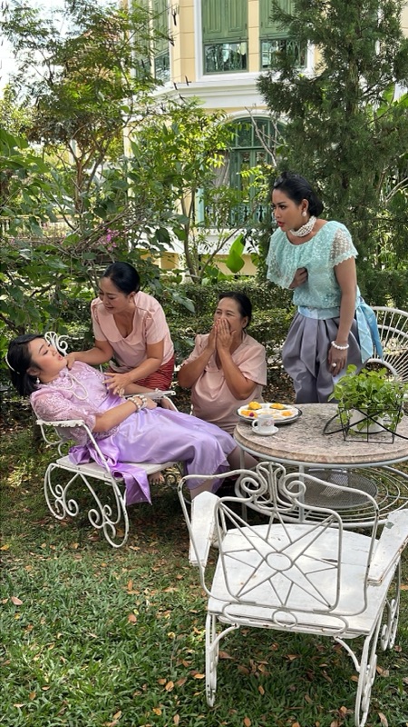 • คอสตูมจัดเต็ม: นักแสดงหญิงมาในชุดไทยประยุกต์สมัยรัชกาลที่ 5-6 ที่เน้นลูกไม้และเครื่องประดับมุกระยิบระยับ ส่วนนักแสดงชายสวมชุดราชปะแตนและสูทสากลตามยุคสมัย สะท้อนความพิถีพิถันขอทีมงานฝ่ายเครื่องแต่งกาย