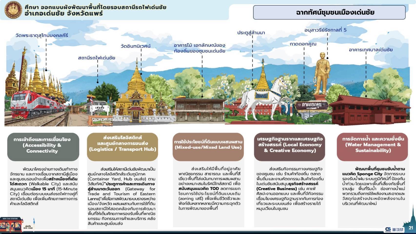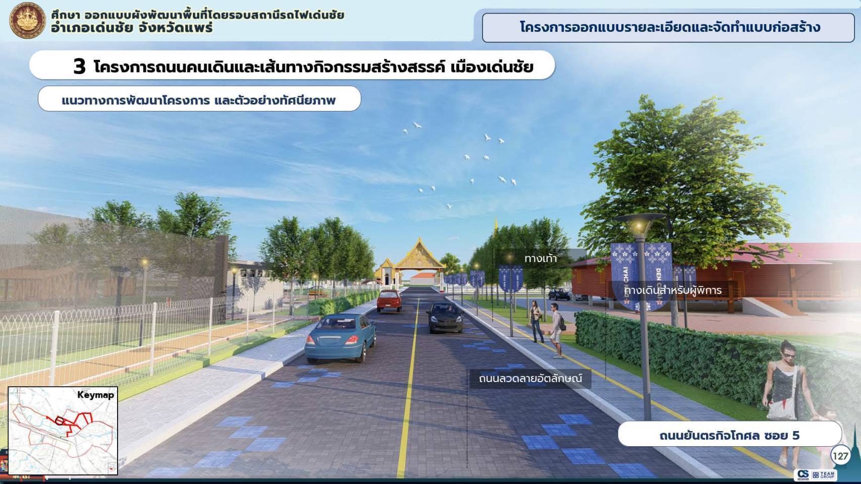 ทุกท่านต้องศึกษาเพื่อเตรียมรับการพัฒนาครั้งใหญ่ ที่ออกแบบโดยกรมโยธาธิการและผังเมือง เผื่อจะให้ท้องถิ่นนำมาเป็นแนวทางการพัฒนา และจัดหางบประมาณมาดำเนินการ เด่นชัยเป็นเมืองเศรษฐกิจที่สำคัญของจังหวัดแพร่ ทั้งระบบขนส่งที่จะนำคนจำนวนมาก เละสินค้าที่จะกระจายไปทุกภาค ถึงประเทศจีน วันนี้ต้องเร่งทำความพร้อมของคนเด่นชัย จังหวัดแพร่ ที่จะได้รับผลประโยชน์ในครั้งนี้ชั่วลูกชั่วหลาน