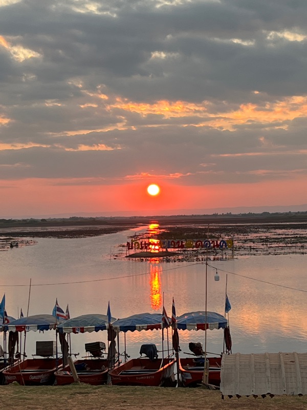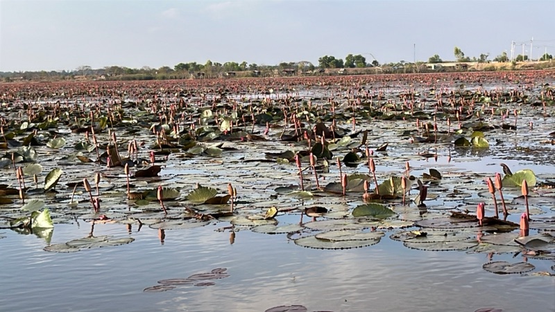 บรรยากาศที่ ท่าเรือทะเลบัวแดงดอนคง จังหวัดอุดรธานี คึกคักตั้งแต่เช้าตรู่ หลังมีกระแส “ตามรอยลิซ่า” ทำให้นักท่องเที่ยวหลั่งไหลมาเที่ยวชมความงดงามของทุ่งบัวแดงที่บานสะพรั่งเต็มผืนน้ำ พร้อมนั่งเรือชมวิวพระอาทิตย์ขึ้น สัมผัสอากาศบริสุทธิ์และวิถีชุมชนอย่างใกล้ชิด