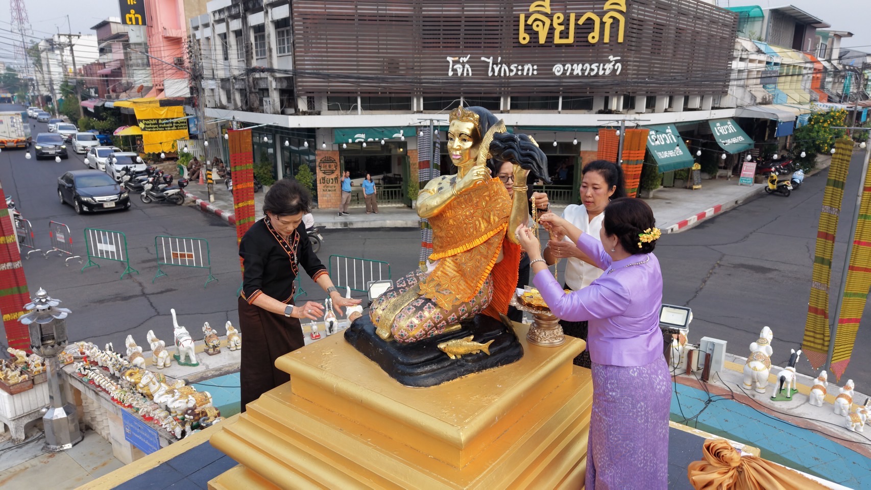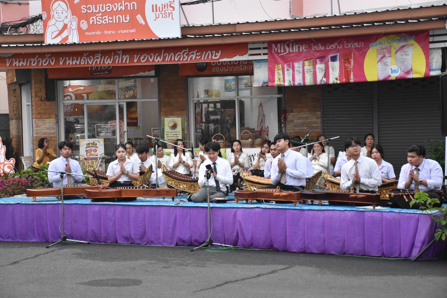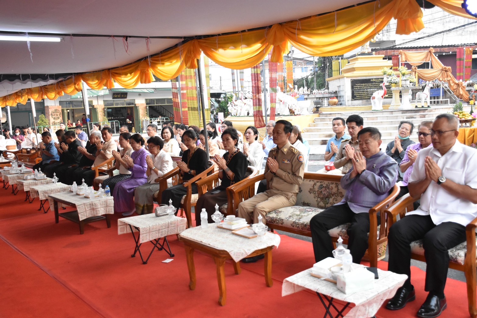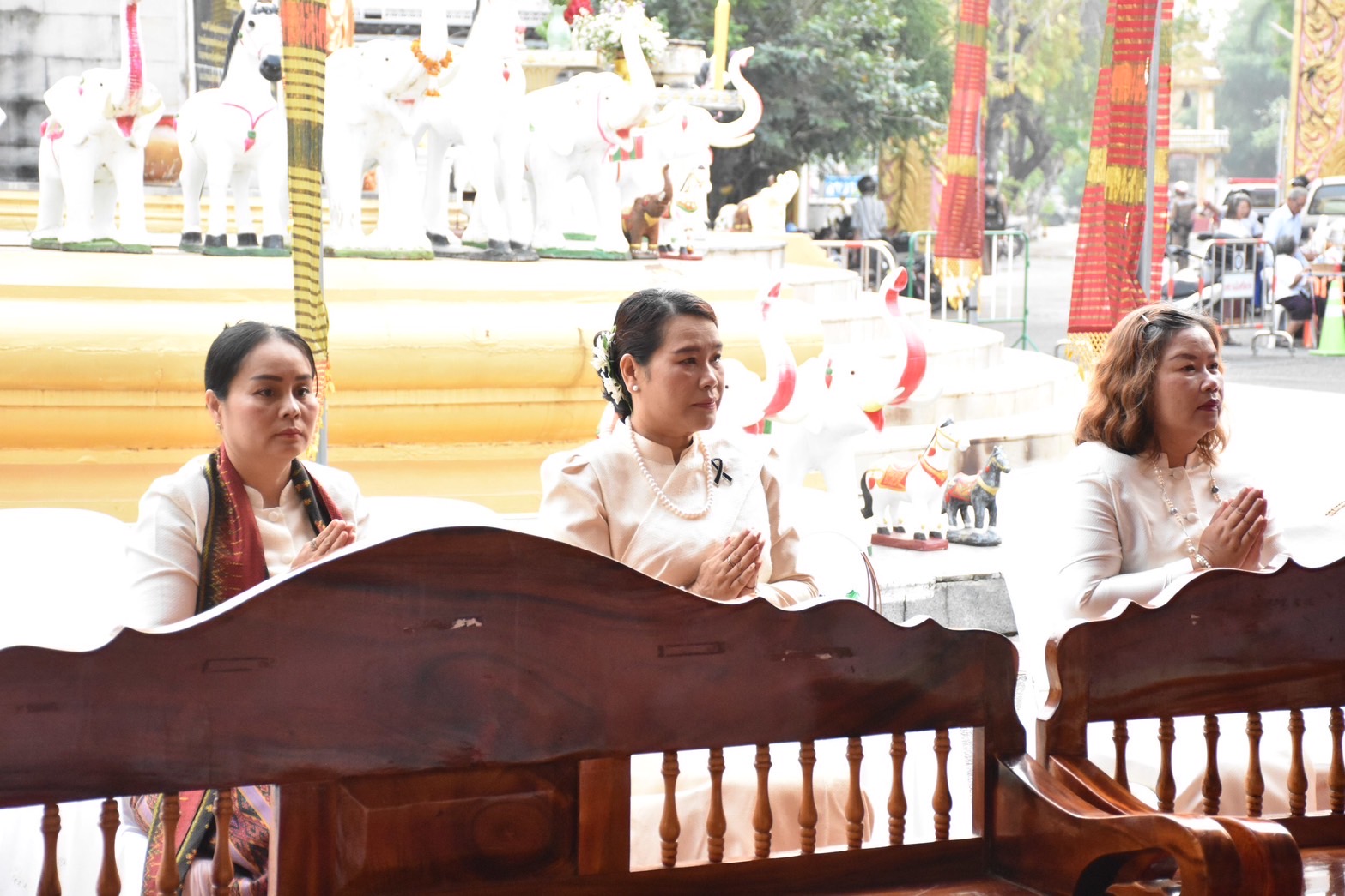 ในโอกาสนี้ ได้รับเกียรติจาก นางภนันท์ยา สิริรุ่งวนิช รองนายกเหล่ากาชาดจังหวัดศรีสะเกษ เป็นผู้นำเปลี่ยนสไบเครื่องทรงพระนางศรีสระเกศ ร่วมพิธีถวายเครื่องบวงสรวง และพิธีรำถวายพระนางศรีสระเกศ