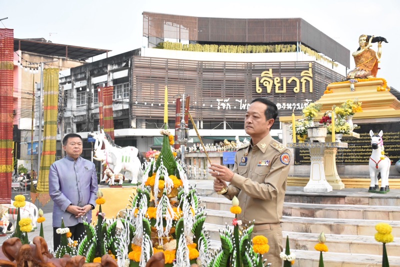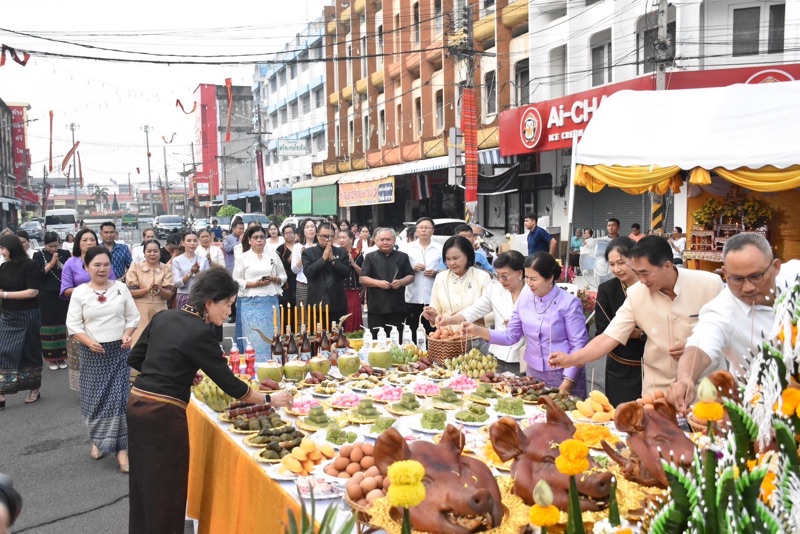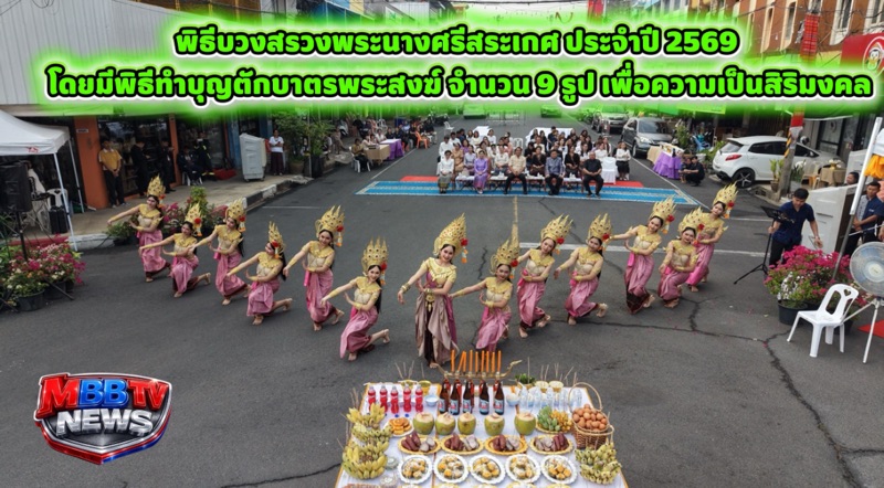 นายอนุรัตน์ ธรรมประจำจิต ผู้ว่าราชการจังหวัดศรีสะเกษ เป็นประธานในพิธีบวงสรวงพระนางศรีสระเกศ ประจำปี 2569 โดยมีพิธีทำบุญตักบาตรพระสงฆ์ จำนวน 9 รูป เพื่อความเป็นสิริมงคล