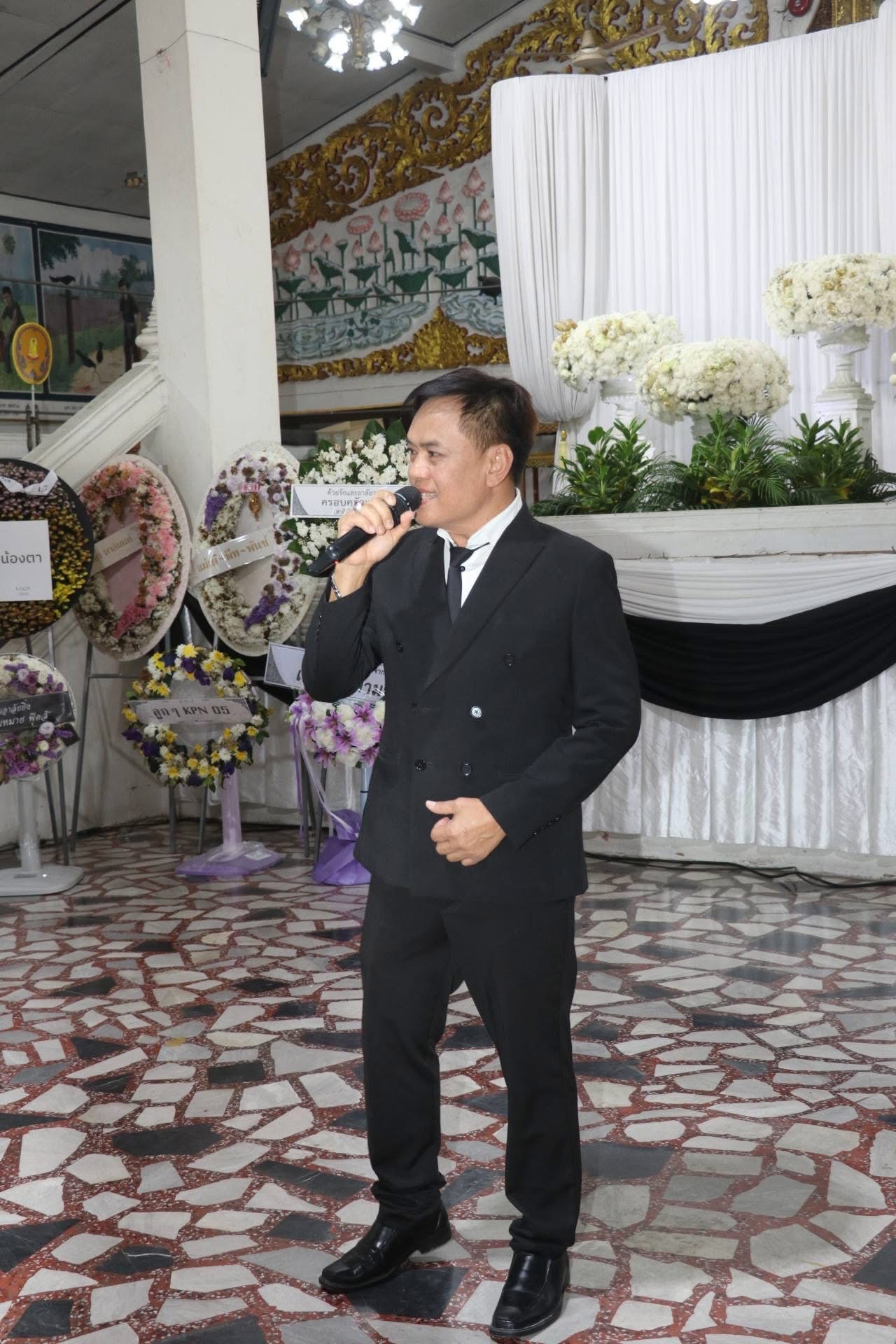 เป็นตัวแทน นายกนกบริพันธ์ ชัยภูมิ นายกสมาคมนักนักเพลงลูกทุ่ง แห่งประเทศไทยพร้อมด้วย..ศิลปินนักร้อง คนวงการบันเทิง เพื่อนพ้องน้องพี่ และอีกหลายๆท่านที่ไม่ได้เอ่ยนาม