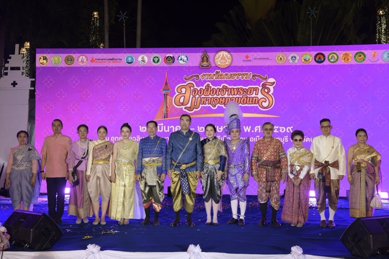วันนี้ (27 มี.ค.68) เวลา 19.00 น. ณ เวทีกลาง อุทยานเฉลิมกาญจนาภิเษก ตำบลบางศรีเมือง อำเภอเมืองนนทบุรี นายเชษฐา โมสิกรัตน์ ผู้ว่าราชการจังหวัดนนทบุรี ประธานในพิธีเปิดงาน “วัฒนธรรมสองฝั่งเจ้าพระยา มหาเจษฎาบดินทร์ ประจำปี พุทธศักราช 2569” พร้อมด้วย นางจิราภรณ์ โมสิกรัตน์ นายกเหล่ากาชาดจังหวัดนนทบุรี นายอภิชัย อร่ามศรี นางสาวปาณิสรา กาญจนะจิตรา นางระวีพรรณ แก้วเพียงเพ็ญ รองผู้ว่าราชการจังหวัดนนทบุรี พล.ต.ต.เดชรพี คงดี ผู้บังคับการตำรวจภูธรจังหวัดนนทบุรี นายนิพัฒน์ ปรีศิริ ปลัดจังหวัดนนทบุรี พันตำรวจเอก ธงชัย เย็นประเสริฐ นายกองค์การบริหารส่วนจังหวัดนนทบุรี นายสมนึก ธนเดชากุล นายกเทศมนตรีนครนนทบุรี นายวิชัย บรรดาศักดิ์ นายกเทศมนตรีนครปากเกร็ด พร้อมด้วยคณะผู้บริหารจังหวัด หัวหน้าส่วนราชการ ภาคเอกชน และประชาชนเข้าร่วมงานอย่างคับคั่ง โดยมีนางสาววันทะนา เวารัตน์ วัฒนธรรมจังหวัดนนทบุรี เป็นผู้กล่าวรายงานวัตถุประสงค์การจัดงาน