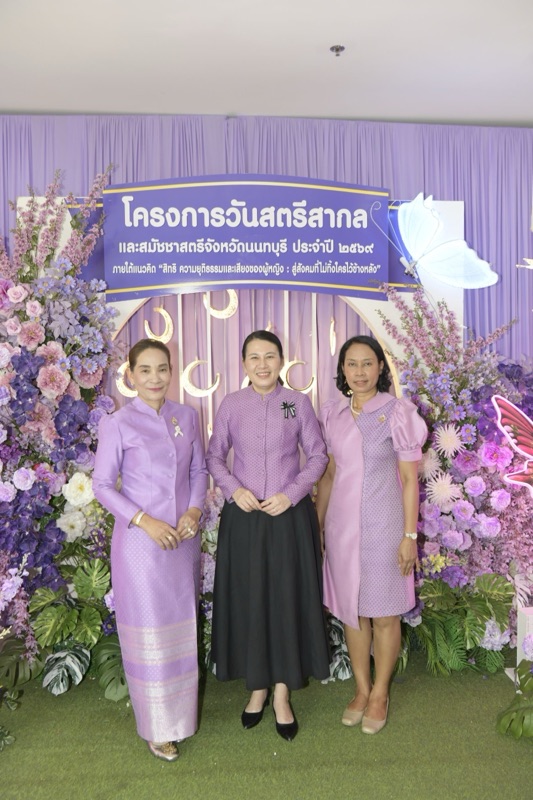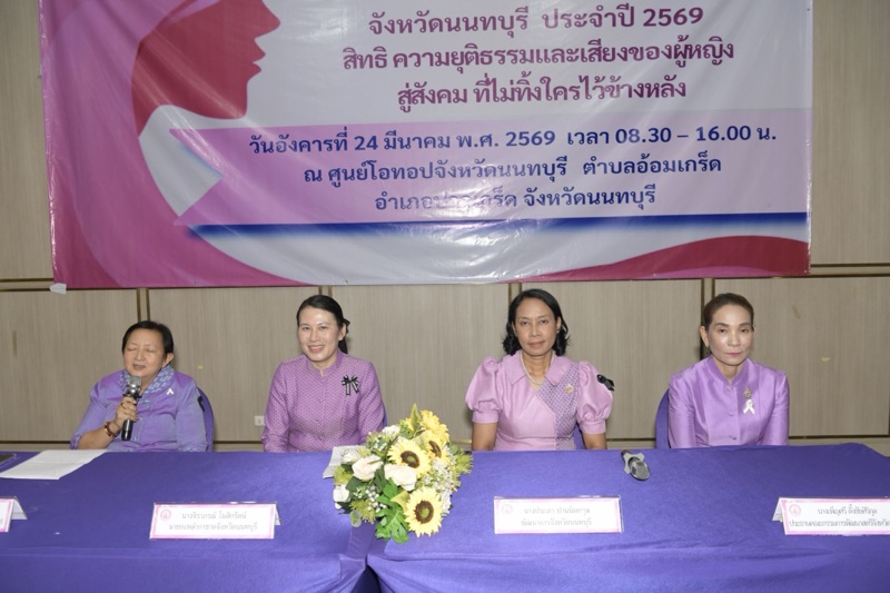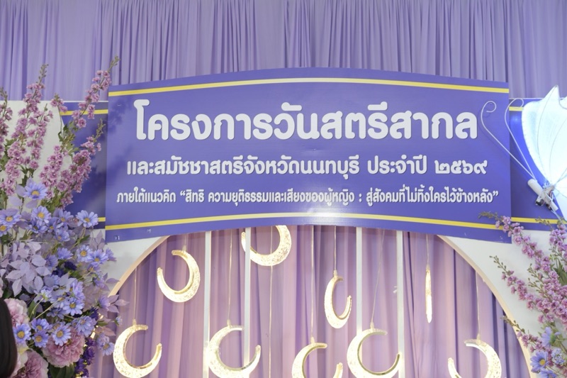 ผู้ว่าราชการจังหวัดนนทบุรี เป็นประธานเปิดโครงการวันสตรีสากล และสมัชชาสตรีจังหวัดนนทบุรี ประจำปี 2569 ภายใต้แนวคิด”สิทธิ ความยุติธรรมและเสียงของผู้หญิง : สู่สังคมที่ไม่ทิ้งใครไว้ข้างหลัง“ ณ ศูนย์โอท็อปจังหวัดนนทบุรี ต.อ้อมเกร็ด อ.ปากเกร็ด จ.นนทบุรี งานดังกล่าวสืบเนื่องมาจากองค์การสหประชาติได้กำหนดให้ วันที่ 8 มีนาคมของทุกปี เป็นวันสตรีสากล เพื่อรำลึกถึงการต่อสู้ของสตรีในการเรียกร้องความเสมอภาคการพัฒนาและสันติภาพ อีกทั้งตุ้นให้สังคมตระหนักถึงศักยภาพสิทธิมนุษยชน และความเสมอภาคระหว่างเพศ มีวัตถุประสงค์เพื่อเสริมสร้างเจตคติที่ดีของสังคม ให้คำนึงถึงศักดิ์ศรีและคุณค่าความเป็นมนุษย์ พร้อมทั้งส่งเสริมศักยภาพ ความเสมอภาค และการคุ้มครองพิทักษ์สิทธิสตรี รับฟังและแลกเปลี่ยนความคิดเห็น ข้อเสนอแนะเกี่ยวกับความเสมอภาคของสตรี กฎหมายที่เกี่ยวข้อง และสิทธิต่างๆ ผู้เข้าร่วมกิจกรรมในครั้งนี้ ประกอบด้วย กลุ่มองค์กรสตรี กลุ่มครอบครัว องค์กรชุมชน หน่วยงานภาครัฐ ภาคเอกชน ภาคประชาสังคม และประชาชนทั่วไป รวมจำนวน ทั้งสิ้น 310 คน