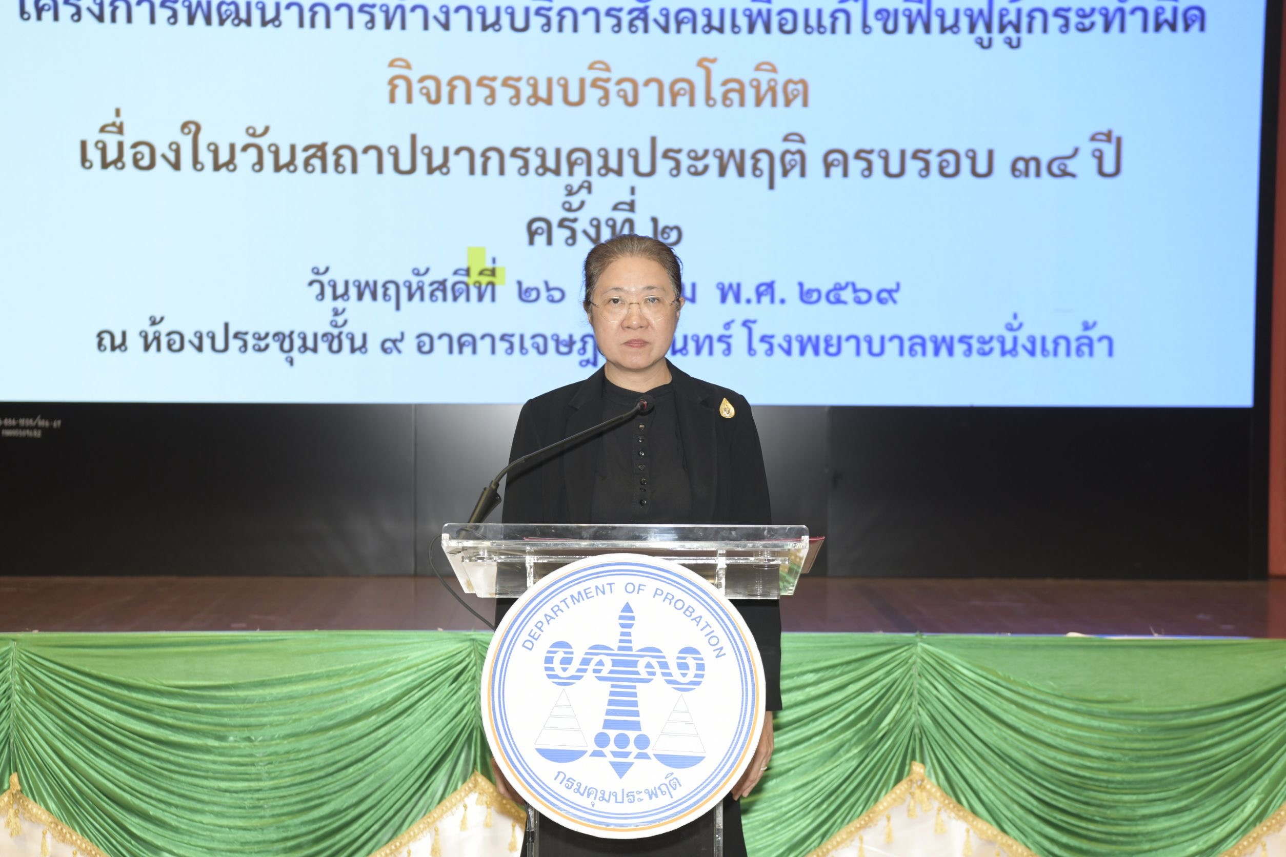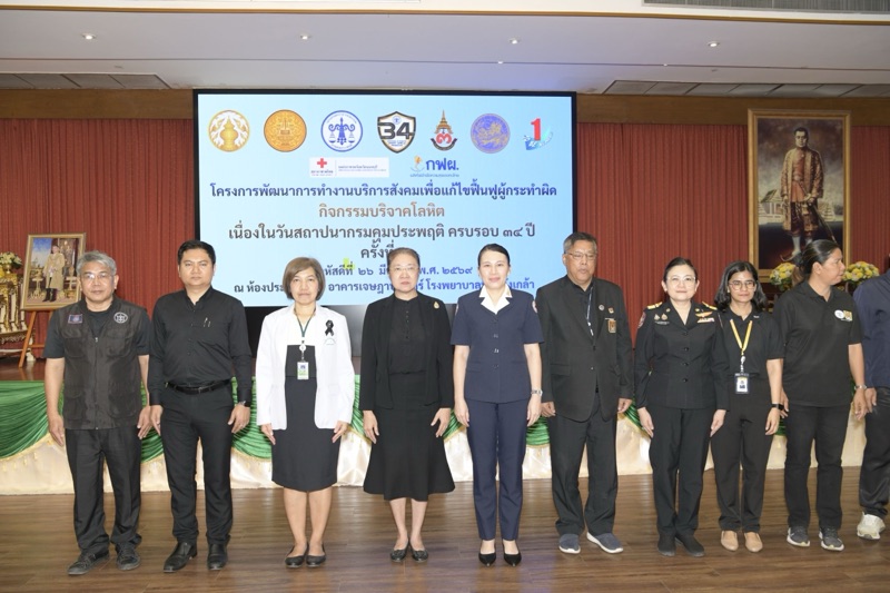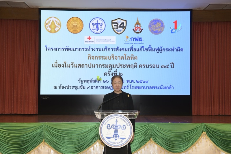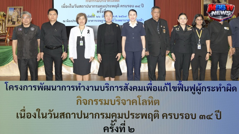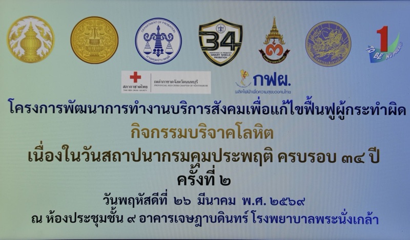 วันพฤหัสบดีที่ 26 มีนาคม 2569 เวลา 9.00 น. นางระวีพรรณ แก้วเพียงเพ็ญ รองผู้ว่าราชการจังหวัดนนทบุรี เป็นประธานเปิดโครงการพัฒนาการทำงานบริการสังคมเพื่อการแก้ไขฟื้นฟูผู้กระทำความผิด กิจกรรมบริจาคโลหิต เนื่องในวันสถาปนากรมคุมประพฤติ ครบรอบ 34 ปี ณ ห้องประชุมชั้น 9 อาคารมหาเจษฎาบดินทร์ โรงพยาบาลพระนั่งเกล้า สืบเนื่องมาจากตามพระราชบัญญัติวิธีการดำเนินการคุมความประพฤติ ประมวลกฎหมายอาญา พ.ศ.2522 ได้มีการจัดตั้งสำนักงานคุมประพฤติกลางเมื่อวันที่ 7 สิงหาคม 2522 เป็นหน่วยงานระดับกอง สังกัด สำนักงานส่งเสริมงานตุลาการกระทรวงยุติธรรม ต่อมามีการขยายงานออกสู่ส่วนภูมิภาคมากขึ้น จึงให้สำนักงานคุมประพฤติกลาง มีปริมาณงาน ขอบเขตอำนาจหน้าที่ และความรับผิดชอบ เพิ่มมากขึ้น