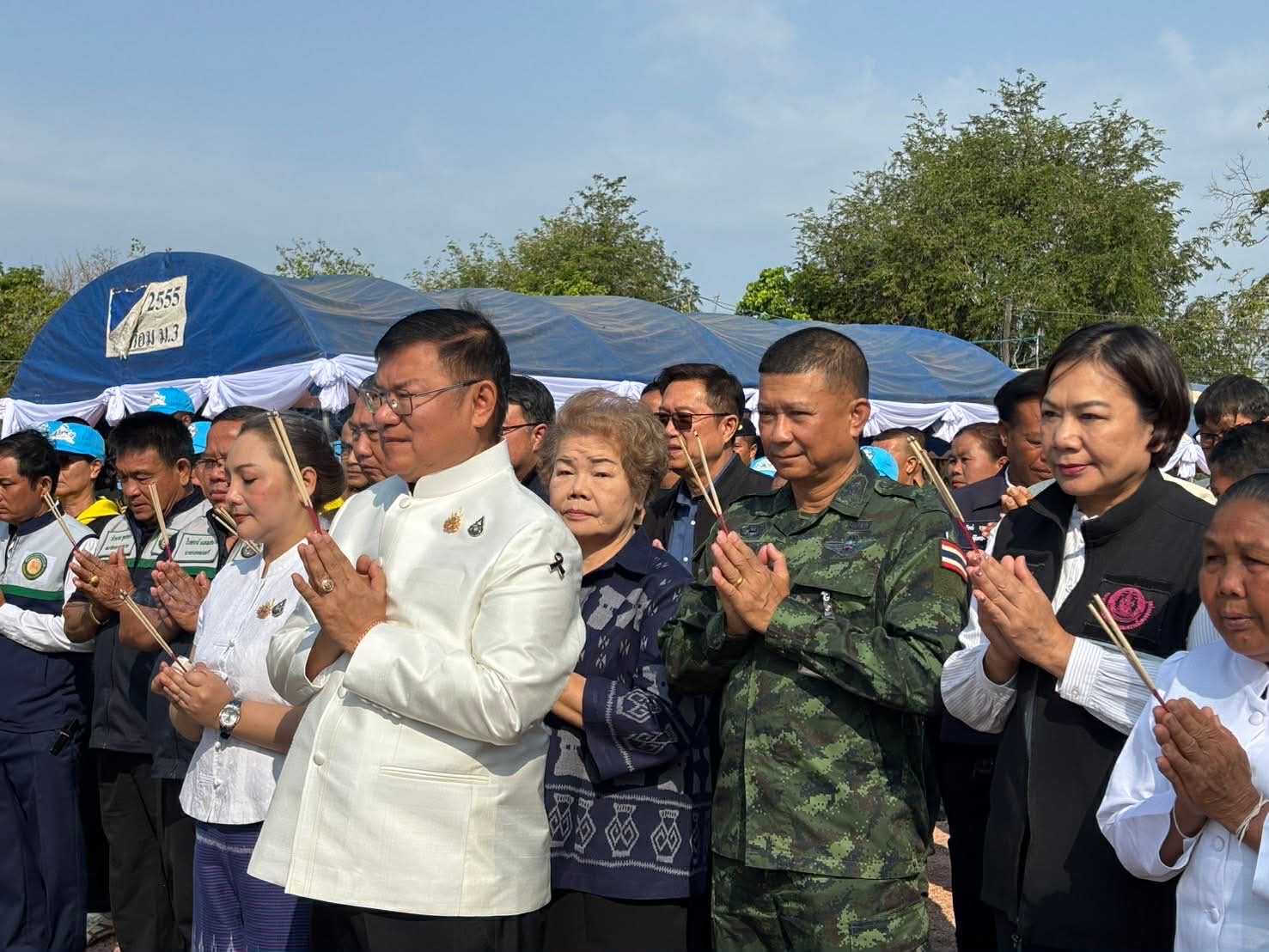 โดยมีพันเอก ชิตวรรธน์ ฐิตสวัสดิ์ รองผู้บัญชาการมณฑลทหารบกที่ 24 พร้อมด้วยพัฒนาสังคมและความมั่นคงของมนุษย์จังหวัดอุดรธานี นายอำเภอบ้านผือ ผู้บริหารองค์กรปกครองส่วนท้องถิ่น กำนัน ผู้ใหญ่บ้าน จิตอาสาพระราชทานและครอบครัวของ ร.ต. วสันต์ ขานหัวโทน เข้าร่วมพิธี