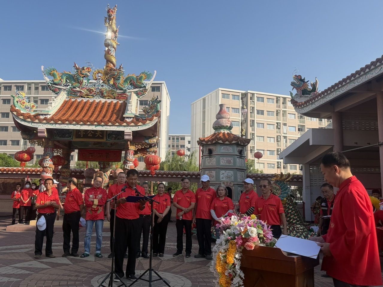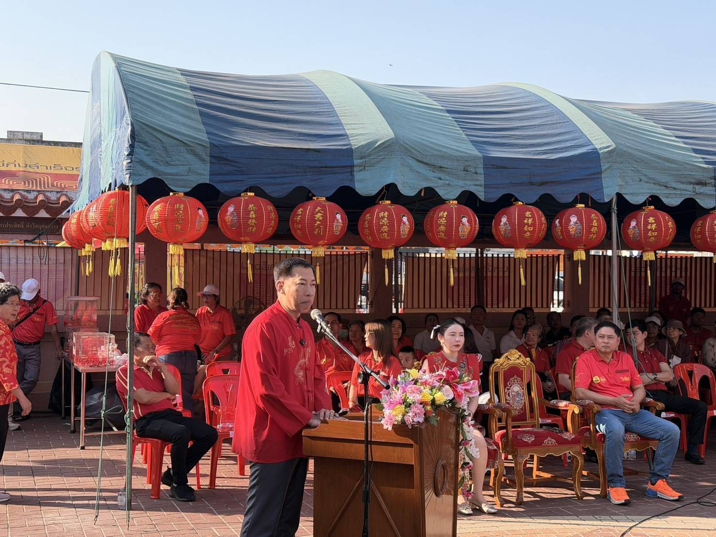 วัฒนธรรมจังหวัดนนทบุรี ปลัดอาวุโสอำเภอบางบัวทอง ผู้บริหารเทศบาลนครบางบัวทอง ประธานสภาอุตสาหกรรมท่องเที่ยวจังหวัดนนทบุรี คณะกรรมการบางบัวทองมูลนิธิ และประชาชนชาวไทย เชื้อสายจีน ร่วมพิธี