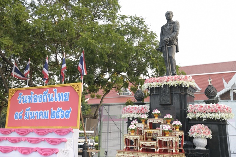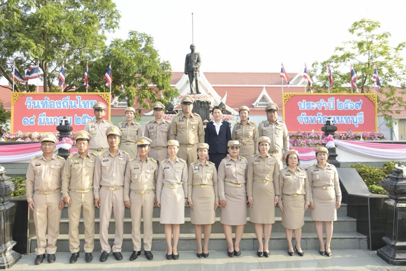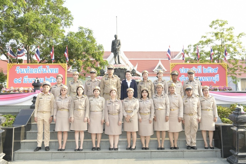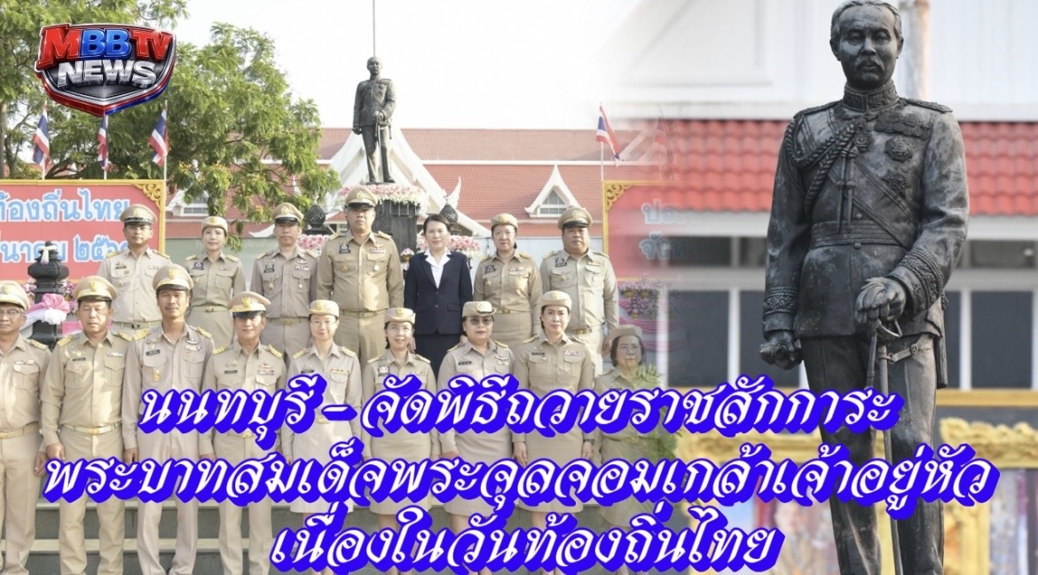 วันนี้ (18 มี.ค. 69) เวลา 07.30 น. ณ ลานพระบรมราชานุสาวรีย์ รัชกาลที่ 5 หน้าศาลากลางจังหวัดนนทบุรี นายเชษฐา โมสิกรัตน์ ผู้ว่าราชการจังหวัดนนทบุรี เป็นประธานพิธีวางพานพุ่มดอกไม้สด ถวายราชสักการะและกล่าวถวายราชสดุดี พระบาทสมเด็จพระจุลจอมเกล้าเจ้าอยู่หัว เนื่องในโอกาส “วันท้องถิ่นไทย” ประจำปี 2569 โดยมีนางจิราภรณ์ โมสิกรัตน์ นายกเหล่ากาชาดจังหวัดนนทบุรี นายอภิชัย อร่ามศรี นางสาวปาณิสรา กาญจนะจิตรา นางระวีพรรณ แก้วเพียงเพ็ญ รองผู้ว่าราชการจังหวัดนนทบุรี นายนิพัฒน์ ปรีศิริ ปลัดจังหวัดนนทบุรี คณะตุลาการ ทหาร ตำรวจ นายอำเภอ หัวหน้าส่วนราชการ ข้าราชการ และองค์กรปกครองส่วนท้องถิ่น เข้าร่วมพิธี เพื่อน้อมรำลึกถึงพระมหากรุณาธิคุณ และตระหนักถึงความสำคัญของการปกครองส่วนท้องถิ่น