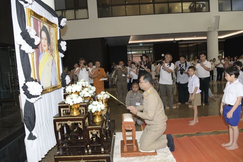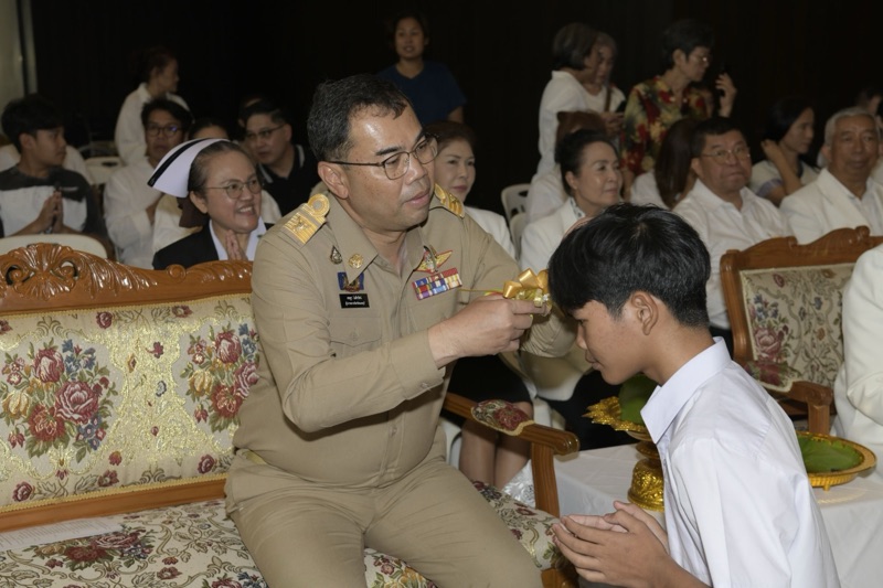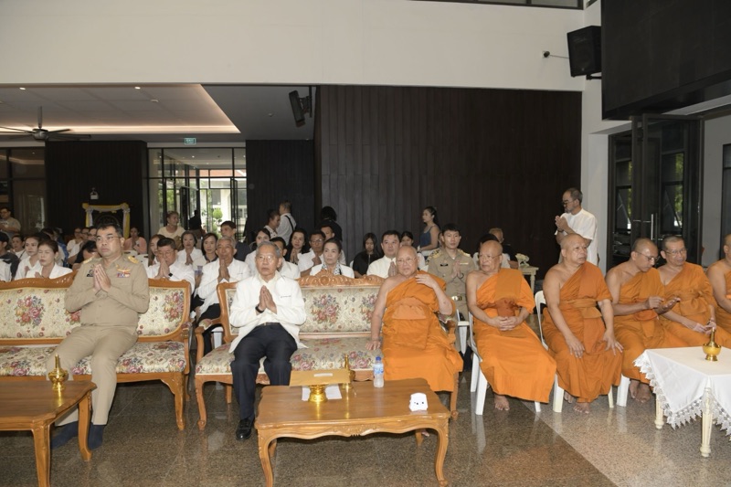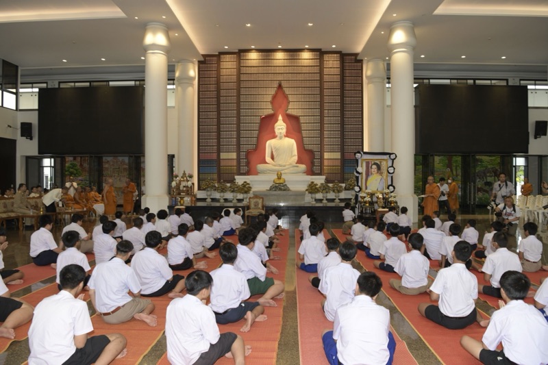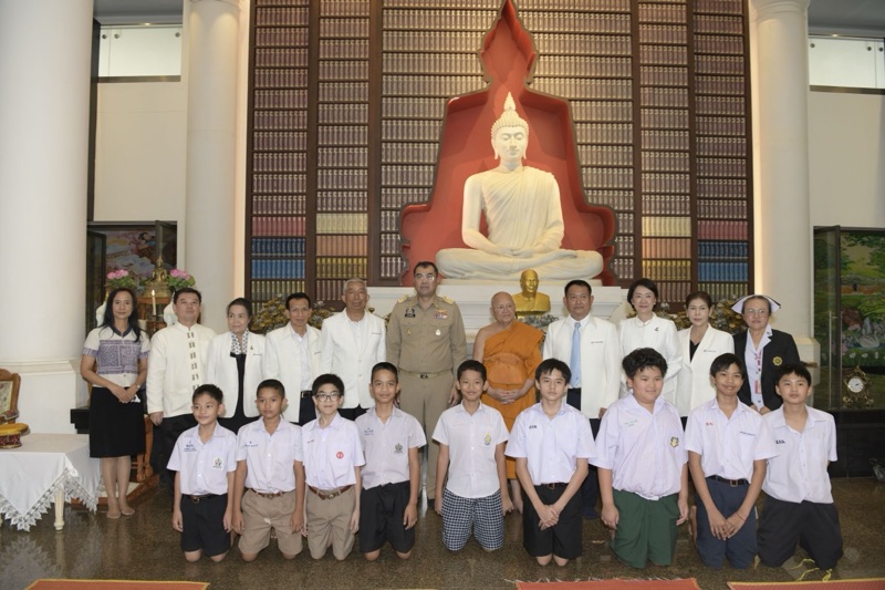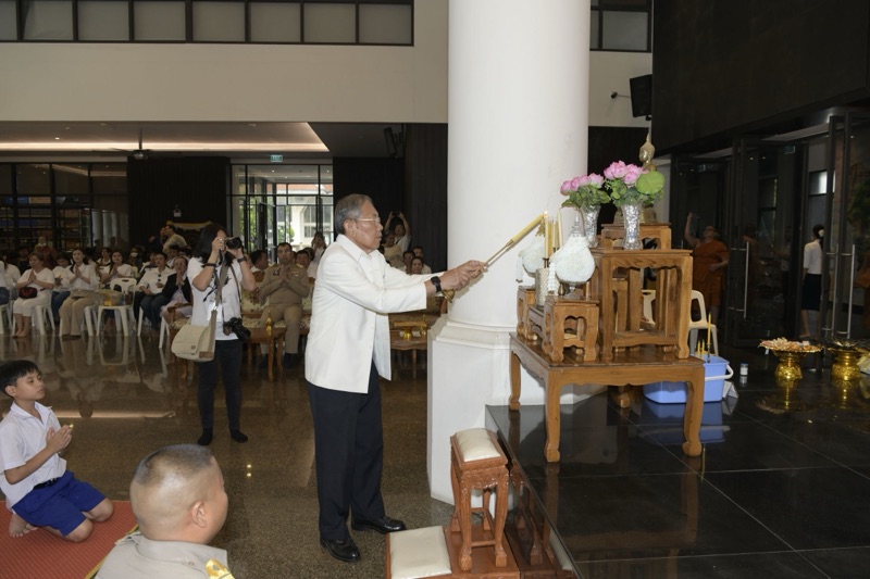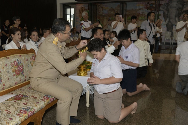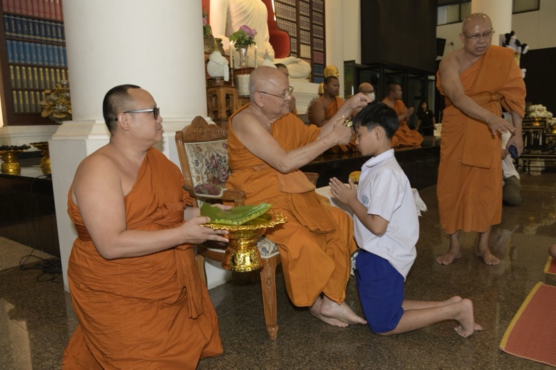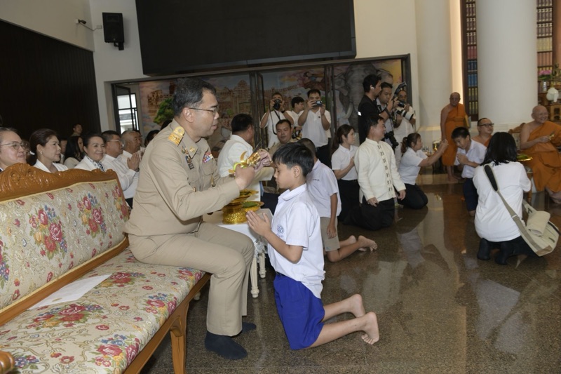 มีนายชีวิน อภิบาลบุญชัย ผู้อำนวยการสำนักงานพระพุทธศาสนาจังหวัดนนทบุรี พุทธศาสนิกชนและผู้ปกครอง เข้าร่วมพิธีจำนวนมาก