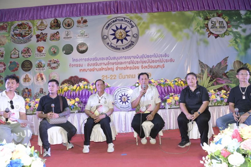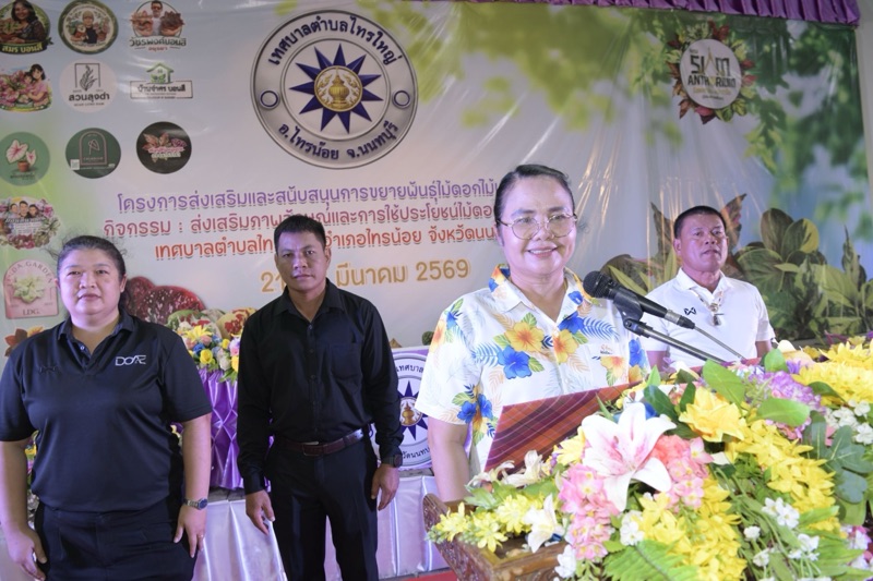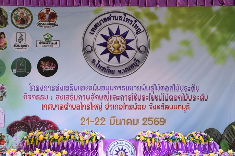 วันนี้ (22 มี.ค. 69) เวลา 12.00 น. ณ อาคารอเนกประสงค์ เทศบาลตำบลไทรใหญ่ จังหวัดนนทบุรี นางสาวสะอาด พิมพ์สมบูรณ์ นายอำเภอไทรน้อย เป็นประธานในพิธีเปิดกิจกรรม “ส่งเสริมภาพลักษณ์และการใช้ประโยชน์ไม้ดอกไม้ประดับ” ภายใต้โครงการส่งเสริมและสนับสนุนการขยายพันธุ์ไม้ดอกไม้ประดับ ประจำปี 2569 นางสาวดวงกมล กักอั้ง ผู้อำนวยการกองคลัง รักษาราชการแทนปลัดเทศบาล ปฏิบัติหน้าที่ นายกเทศมนตรีตำบลไทรใหญ่ กล่าวรายงาน วัตถุประสงค์การจัดงานในครั้งนี้เพื่อตอกย้ำภาพลักษณ์ของประเทศไทยในฐานะผู้นำด้านการผลิตและส่งออกไม้ดอกไม้ประดับที่สำคัญในภูมิภาคเอเชีย โดยเฉพาะไม้มงคลซึ่งเป็นที่ต้องการอย่างมากทั้งในและต่างประเทศ ซึ่งเทศบาลตำบลไทรใหญ่ได้ดำเนินการส่งเสริมมาอย่างต่อเนื่องกว่า 10 ปี สำหรับปีนี้เป็นปีที่ 3 ของการจัดประกวดไม้ดอกไม้ประดับ โดยได้รับความร่วมมือจากชมรมโชคเก้าชั้น - หน้าวัวใบ (แห่งประเทศไทย) และกลุ่มส่งออกบอนสี เพื่อยกระดับมาตรฐานสินค้าเกษตรและเพิ่มมูลค่าทางเศรษฐกิจ