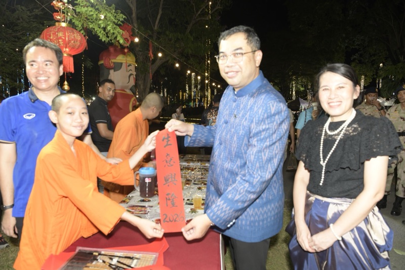 วันนี้ (28 มี.ค.68) เวลา 18.00 น. ณ อุทยานเฉลิมกาญจนาภิเษก ตำบลบางศรีเมือง อำเภอเมืองนนทบุรี นายเชษฐา โมสิกรัตน์ ผู้ว่าราชการจังหวัดนนทบุรี พร้อมด้วย นางจิราภรณ์ โมสิกรัตน์ นายกเหล่ากาชาดจังหวัดนนทบุรี และนางสาวปาณิสรา กาญจนะจิตรา รองผู้ว่าราชการจังหวัดนนทบุรี ตรวจเยี่ยมสถานีต่าง ๆ ที่มาร่วมออกร้านในงาน “วัฒนธรรมสองฝั่งเจ้าพระยา มหาเจษฎาบดินทร์ ประจำปี พุทธศักราช 2569” และมอบรางวัลให้แก่ผู้เข้าร่วมกิจกรรมในสถานี