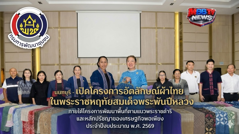 วันอังคารที่ 21 เมษายน 2569 เวลา 13.30 น. นางระวีพรรณ แก้วเพียงเพ็ญ รองผู้ว่าราชการจังหวัดนนทบุรี เป็นประธานเปิดโครงการอัตลักษณ์ผ้าไทยในพระราชหฤทัยสมเด็จพระพันปีหลวง ภายใต้โครงการพัฒนาพื้นที่ตามแนวพระราชดำริ และหลักปรัชญาของเศรษฐกิจพอเพียง ประจำปีงบประมาณ พ.ศ. 2569 ณ ศูนย์จำหน่ายสินค้าด้านการเกษตร สินค้ากลุ่มแม่บ้าน สินค้าวิสาหกิจชุมชน สินค้าหนึ่งตำบลหนึ่งผลิตภัณฑ์ (OTOP ) จังหวัดนนทบุรี อำเภอปากเกร็ด จังหวัดนนทบุรี