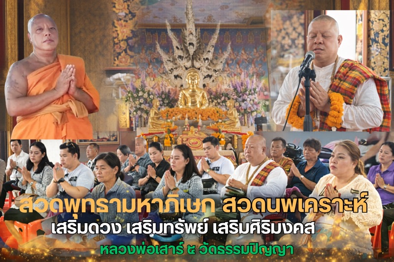 เมื่อเวลา 14.00 น.ของวันเสาร์ที่ 18 เมษายน 2569 ขึ้น 2 ค่ำ เดือน 6 ปีมะเมีย เดือนนี้มีวันเสาร์ 4 เสาร์ วัดธรรมปัญญา ตำบลพรหมณี อำเภอเมือง จังหวัดนครนายก ได้จัดพิธีสวดมหาพุทธาภิเษก องค์หลวงพ่อเสาร์ 5 พร้อมสวดนพเคราะห์ เสริมดวง เสริมทรัพย์ เสริมศิริมงคล โชคลาภ หน้าที่การงาน โดยมี พระครูสุธรรมปัญญาวุธ เจ้าอาวาสวัดธรรมปัญญา เป็นประธานสงฆ์ มีพระเกจินั่งอธิฐานจิต สวดพุทธาภิเษก , สวดนพเคราะห์ เสริมสิริมงคล เสริมดวง เสริมทรัพย์ เสริมโชคลาภ หน้าที่การงาน ตั้งแต่เวลา 14 .00 น. ถึง 16.21 น. โดยมีนักท่องเที่ยวและประชาชนเข้าร่วมในพิธีจำนวนมาก