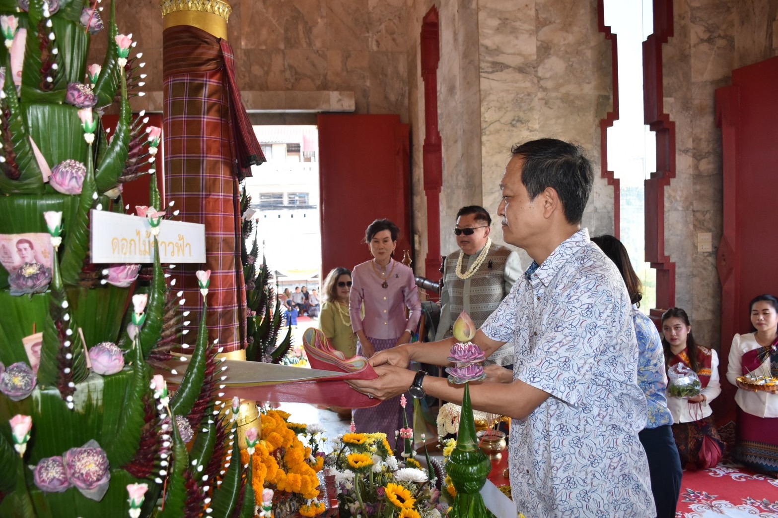 โดยมีหัวหน้าส่วนราชการในจังหวัดศรีสะเกษ คณะผู้บริหาร สมาชิกสภาเทศบาล หัวหน้าส่วนการบริหารงานเทศบาล ผู้บริหารสถานศึกษา พนักงานเทศบาล พนักงานครู เจ้าหน้าที่ และประชาชนชาวศรีสะเกษ เข้าร่วมพิธีอย่างพร้อมเพรียง