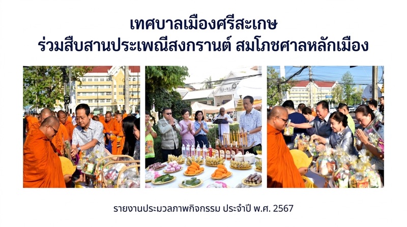 เมื่อวันที่ 13 เมษายน 2569 เวลา 07.00 น. นายอนุรัตน์ ธรรมประจำจิต ผู้ว่าราชการจังหวัดศรีสะเกษ เป็นประธานในพิธีเจริญพระพุทธมนต์ ทำบุญตักบาตรพระสงฆ์ และพิธีบวงสรวงศาลหลักเมือง เนื่องในงานสมโภชศาลหลักเมืองจังหวัดศรีสะเกษ และวันขึ้นปีใหม่ไทย (ประเพณีสงกรานต์) ประจำปี 2569