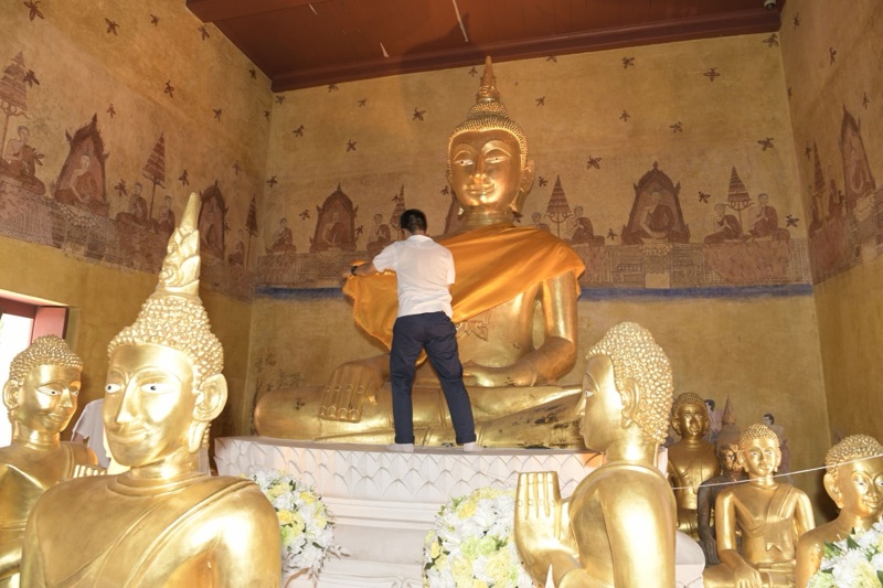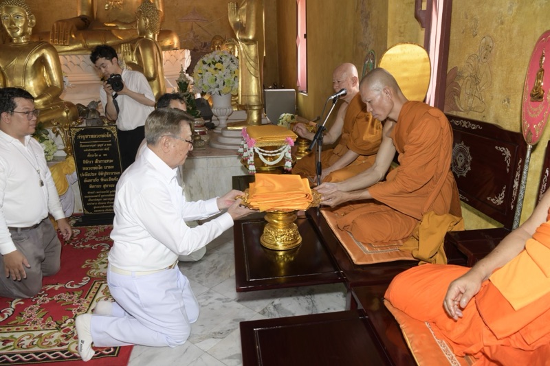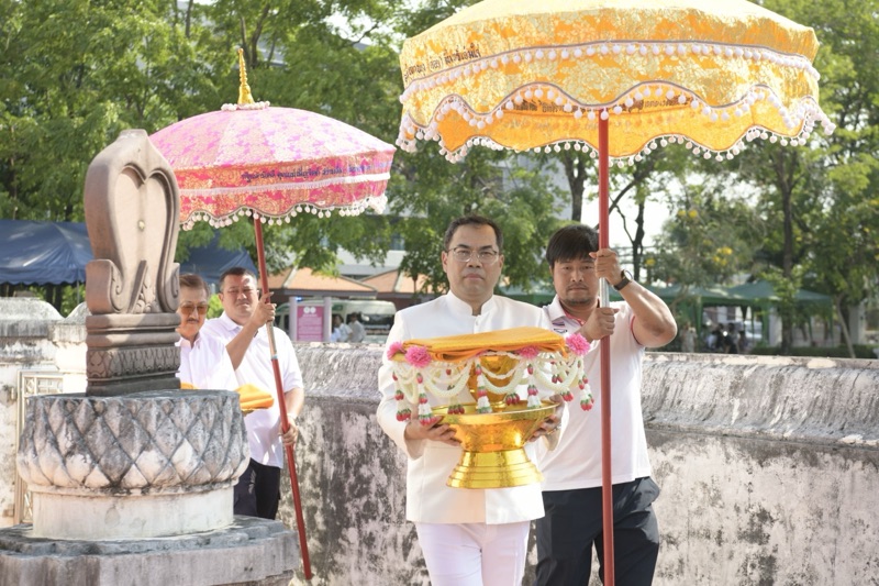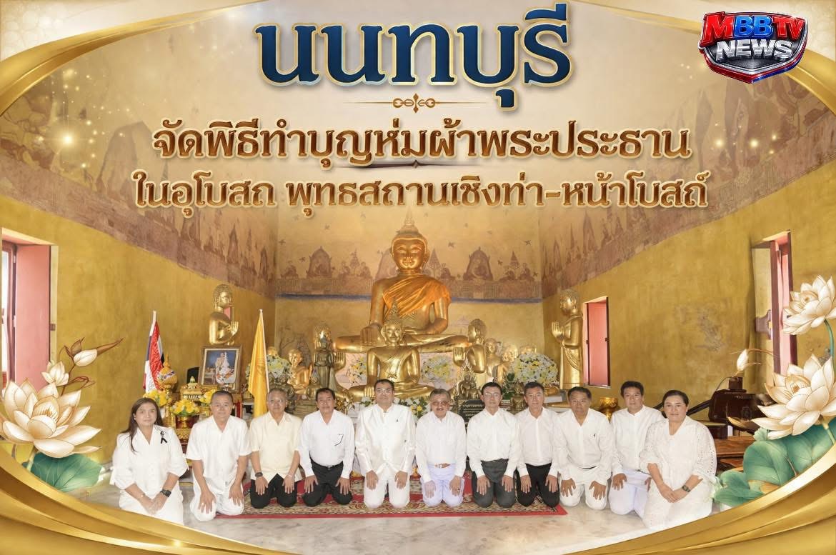 วันนี้ (3 เม.ย.2569) เวลา 08.15 น. ณ พุทธสถานเชิงท่า-หน้าโบสถ์ ตำบลท่าทราย อำเภอเมืองนนทบุรี (ภายในกรมชลประทาน ปากเกร็ด) พระเทพวชิรนันทาภรณ์ เจ้าคณะจังหวัดนนทบุรี เจ้าอาวาสวัดบัวขวัญ เป็นประธานฝ่ายสงฆ์ นายเชษฐา โมสิกรัตน์ ผู้ว่าราชการจังหวัดนนทบุรี เป็นประธานฝ่ายฆราวาส ในพิธีทำบุญห่มผ้าพระประธานในอุโบสถ พุทธสถานเชิงท่า-หน้าโบสถ์ ประจำปี 2569 มีนางสาวญาณิพัชญ์ ศรีโครต นายอำเภอเมืองนนทบุรี นายสมนึก ธนเดชากุล นายกเทศมนตรีนครนนทบุรี และคณะผู้บริหาร ข้าราชการ พนักงาน เจ้าหน้าที่ กลุ่มพลังมวลชน เข้าร่วมพิธีอย่างคับคั่ง