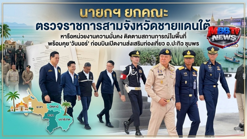 วันนี้ (17 เม.ย. 69) เวลา 07.55 น. ที่ท่าอากาศยานทหาร 2 กองบิน 6 นายอนุทิน ชาญวีรกูล นายกรัฐมนตรีและรัฐมนตรีว่าการกระทรวงมหาดไทย พร้อมด้วย นายพิพัฒน์ รัชกิจประการ รองนายกรัฐมนตรีและรัฐมนตรีว่าการกระทรวงคมนาคม พล.ท. อดุลย์ บุญธรรมเจริญ รัฐมนตรีว่าการกระทรวงกลาโหม นายภราดร ปริศนานันทกุล รัฐมนตรีประจำสำนักนายกรัฐมนตรี พล.ต.ท.รุทธพล เนาวรัตน์ รัฐมนตรีว่าการกระทรวงยุติธรรม นายประเสริฐ จันทรรวงทอง รัฐมนตรีว่าการกระทรวงศึกษาธิการ นายสรรเพชญ บุญญามณี รัฐมนตรีช่วยว่าการกระทรวงคมนาคม นายเจเศรษฐ์ ไทยเศรษฐ์ นายวรศิษฎ์ เลียงประสิทธิ์ รัฐมนตรีช่วยว่าการกระทรวงมาไทย นายอรรษิษฐ์ สัมพันธรัตน์ ปลัดกระทรวงมหาดไทย พล.อ.อุกฤษฎ์ บุญตานนท์ ผู้บัญชาการทหารสูงสุด ร่วมเดินทางไปยังสนามบินนราธิวาส เพื่อตรวจราชการในพื้นที่จังหวัดชายแดนภาคใต้ และจังหวัดชุมพร